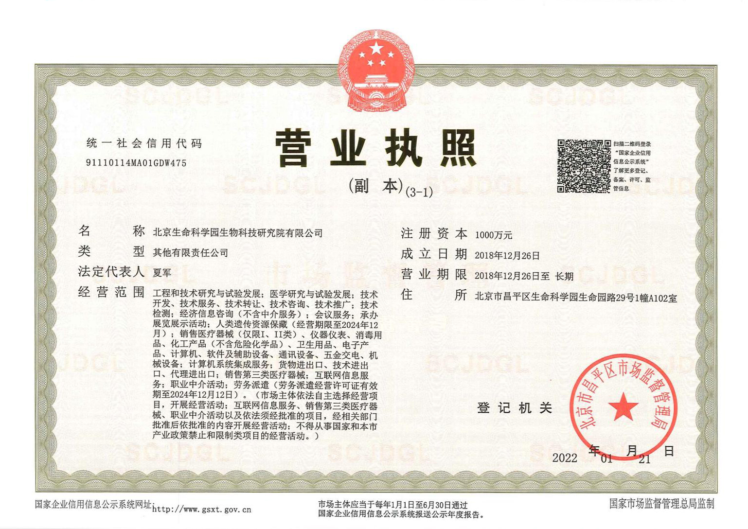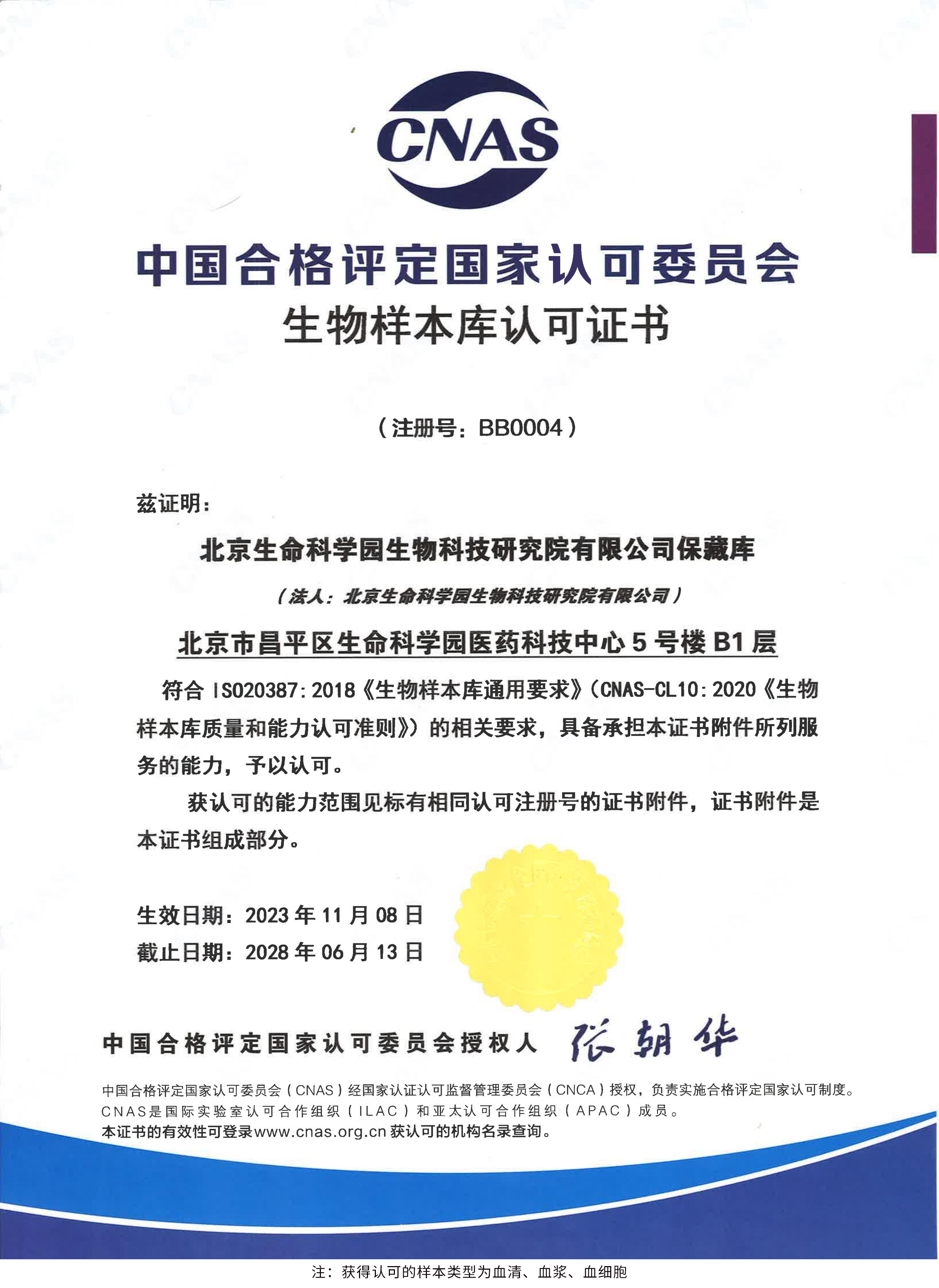 北京生命科學園生物科技研究院(以下簡稱“北京生物樣本資源庫”)(Biobank of Life Science Park,簡寫“BoLSP”)是一家由北京市科委和中關村生命科學園共同支持設立的第三方生物樣本庫公共服務平臺,秉承北京重大疾病臨床數(shù)據和樣本資源庫(以下簡稱“北京庫”)(Beijing Biobank of Clinical Resources,BBCR)十余年的發(fā)展成果,聚合眾多臨床樣本專家的專業(yè)共識,致力于在生命科學、生物醫(yī)藥研究領域發(fā)揮銜接樣本資源持有者與研究者的橋梁作用,解決生物樣本資源開發(fā)上下游信息不對稱、資源共享困難等問題。研究院在北京中關村生命科學園昌平園區(qū)建立了2000㎡生物樣本庫,最大存儲規(guī)模達1000萬份。研究院遵循CNAS-CL10:2020《生物樣本庫質量和能力認可準則》,同時結合北京庫過去十年的工作經驗與教訓,建立了一套完善的生物樣本保藏質量管理體系,從人、機、料、法、環(huán)、控多個角度,實現(xiàn)生物樣本保藏過程的全面質量控制,先后獲得國家科技部頒發(fā)的人類遺傳資源保藏行政許可證書和中國合格評定國家認可委員會(China National Accreditation Service for Conformity Assessment,CNAS)頒發(fā)的“CNAS認可證書”。